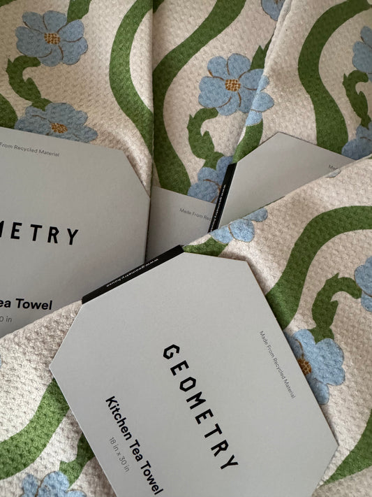 Blue and green floral geometry tea towel